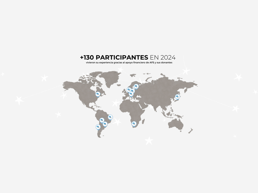 En los 70 años de AFS en Argentina y Uruguay, más de 1.000 becarios accedieron a becas totales o parciales gracias a quienes, como vos, eligieron hacer su aporte para que más jóvenes y docentes vivan una experiencia educativa intercultural.
